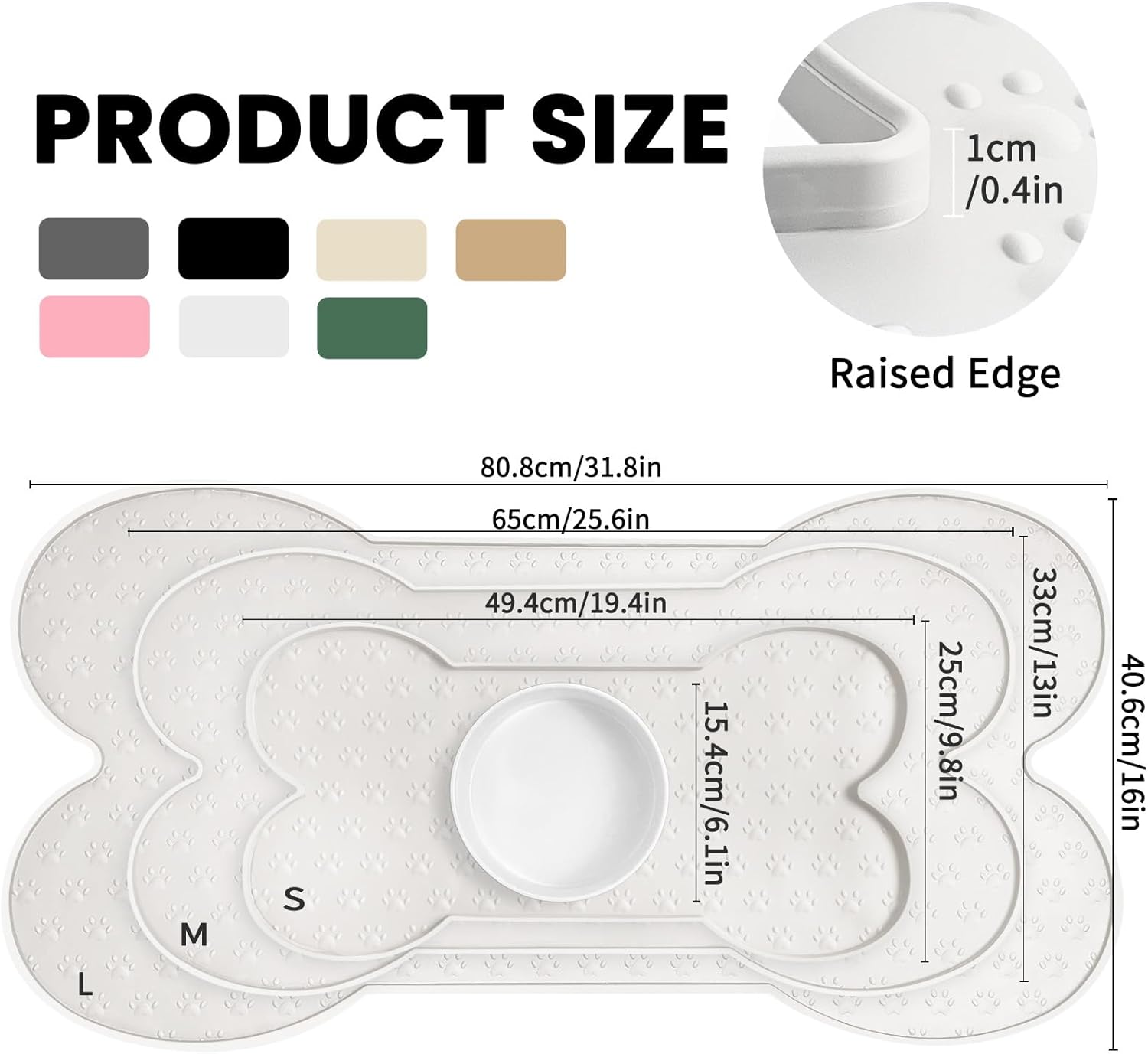 - Health Silicone Material - This pet bowl mat is non-toxic, and non-allergenic, protecting the health and safety of your pet's feeding. 31.8" x 16" holds two extra large bowls, perfect for large-sized dogs and cats to enjoy a delicious meal tray.
