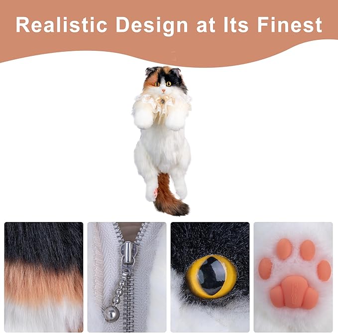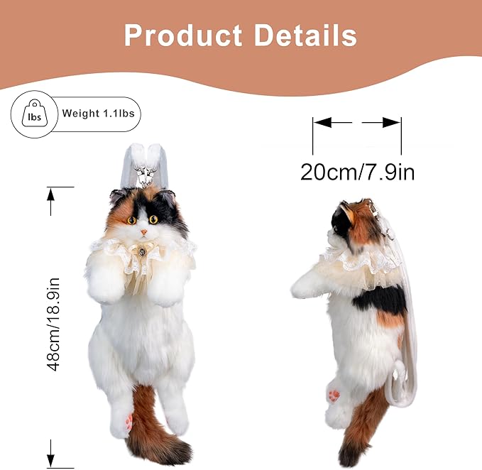 - Heartwarming Surprise - This Calico Cat backpack is an ideal delight!The included box packaging and greeting card offer convenience. The accompanying grooming tool helps keep its fur tidy.