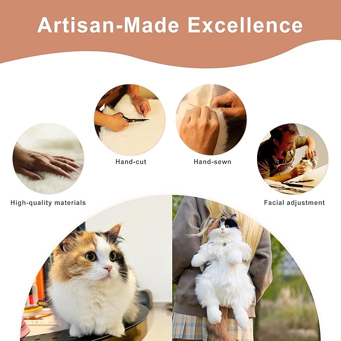- Handcrafted Lifelike Cat Backpack - Using 3D modeling to capture real cat expressions, each backpack is meticulously crafted to simulate agile poses and proportions. Crafted by experienced artisans, from hand-selecting materials to cutting and sewing, every detail is meticulously handmade.