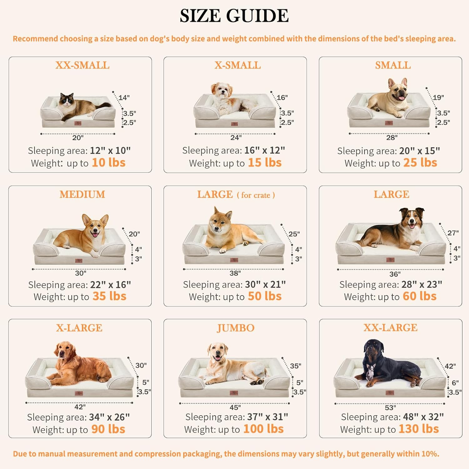 Comfort Expression XL Dog Beds for Extra Large Dogs, Waterproof Orthopedic Dog Bed with Bolster, Washable Pet Sofa Couch with Removable Cover & Non-Slip Bottom(X-Large,Beige)