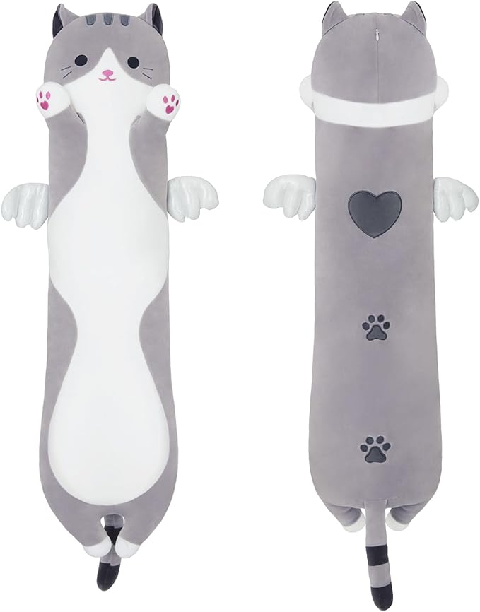 Long Plush Toy Cat Pillow Cute Plush Cat Toy Doll Stuffed Animal Cat Hugging Pillow for Sleeping Gift for Kids and Girls(Gray,110cm/43.3in)
