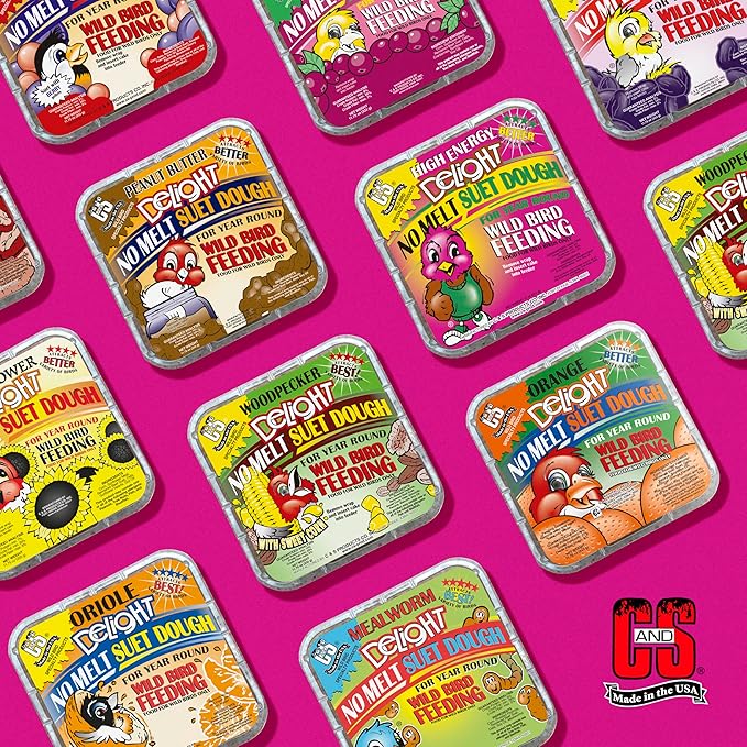 - C&S HIGH ENERGY DELIGHT No Melt Suet Dough attracts woodpeckers, nuthatches, chickadees and more with its blend of roasted peanuts and energy-rich ingredients