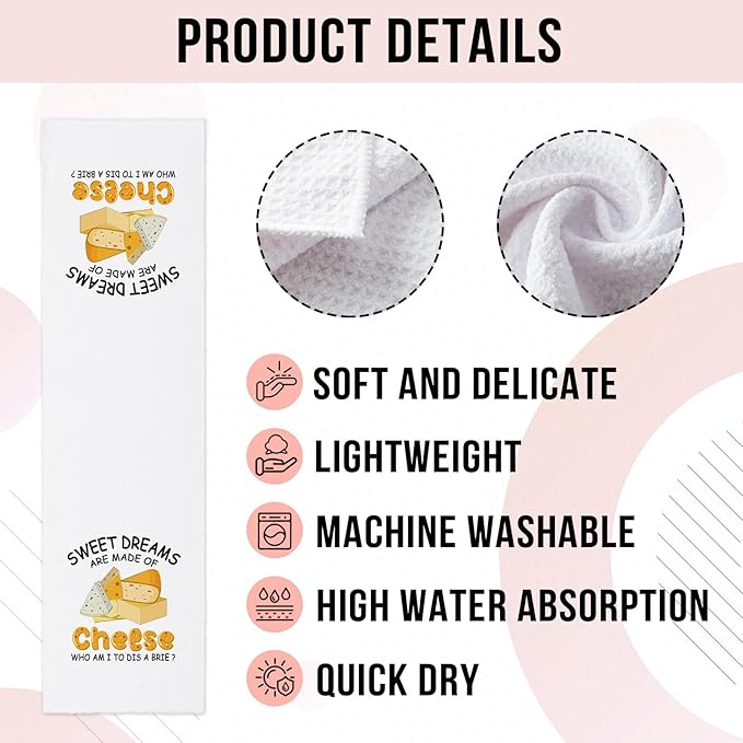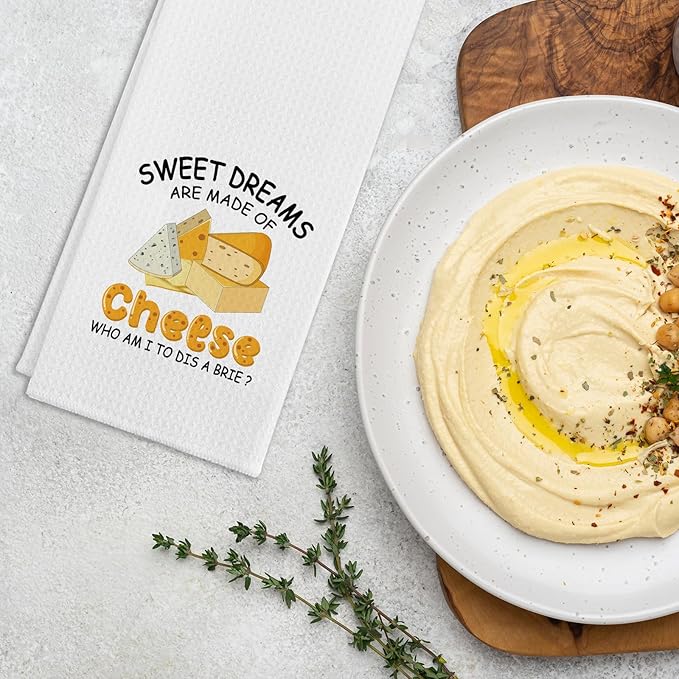 - Unique Design: Our funny kitchen towel with saying "Sweet Dreams are Made of Cheese Who am I to Dis A Brie". The simple yet cute text patterns can bright up your kitchen and surprise your family and friends. It's a perfect kitchen gift for your favourite chef.