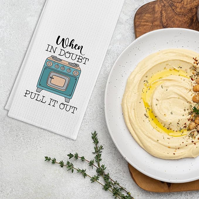 - Unique Design: Our funny kitchen towel with saying "When in Doubt Pull It Out". The simple yet cute text patterns can bright up your kitchen and surprise your family and friends. It's a perfect kitchen gift for your favourite chef.