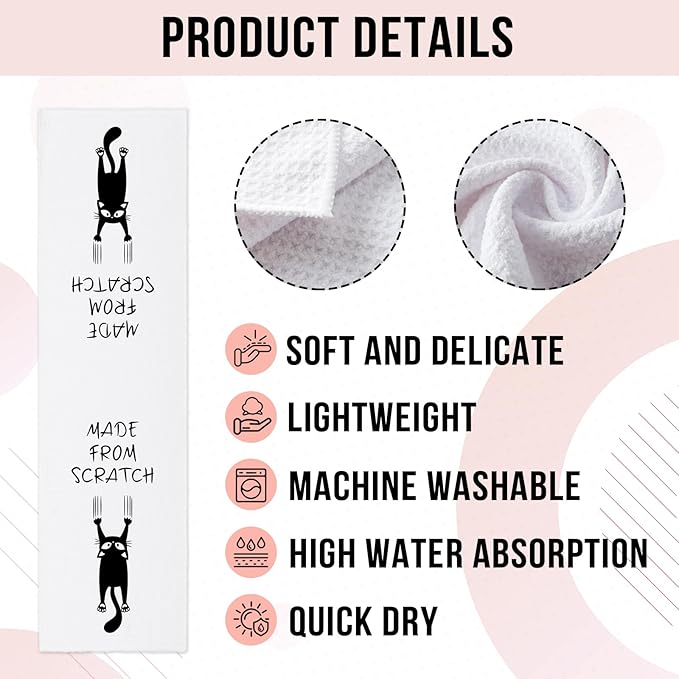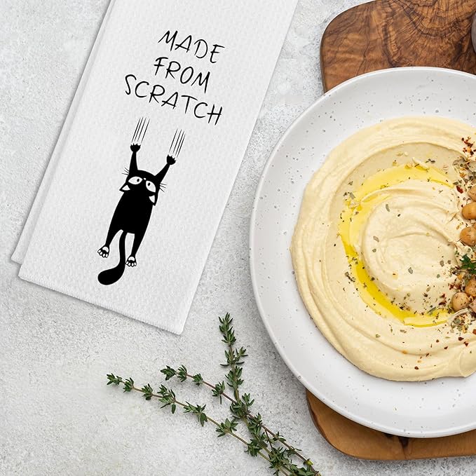 Funny Kitchen Dish Towels, Made from Scratch Dishcloths, Trendy Kitchen Decor, Funny Black Cat Hand Towel Gifts for Cat Lovers, Cute Housewarming Gifts for Women Hostess Housewife Friend