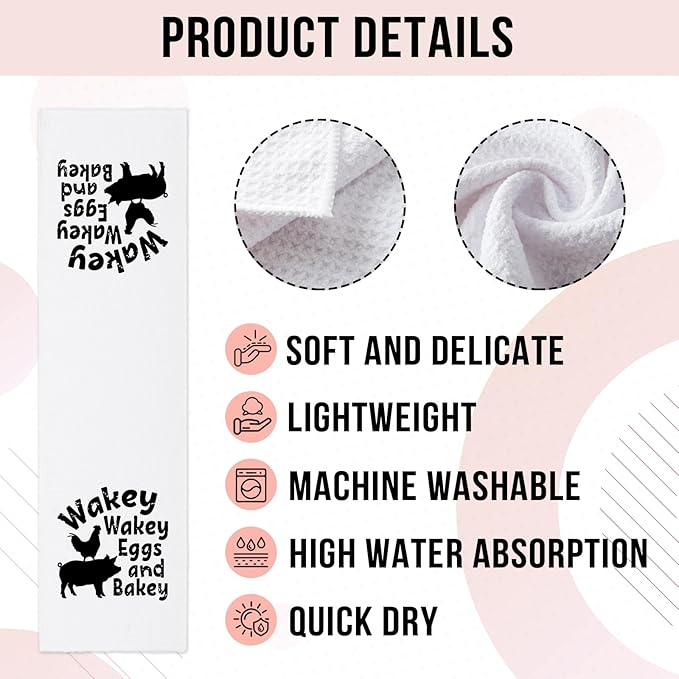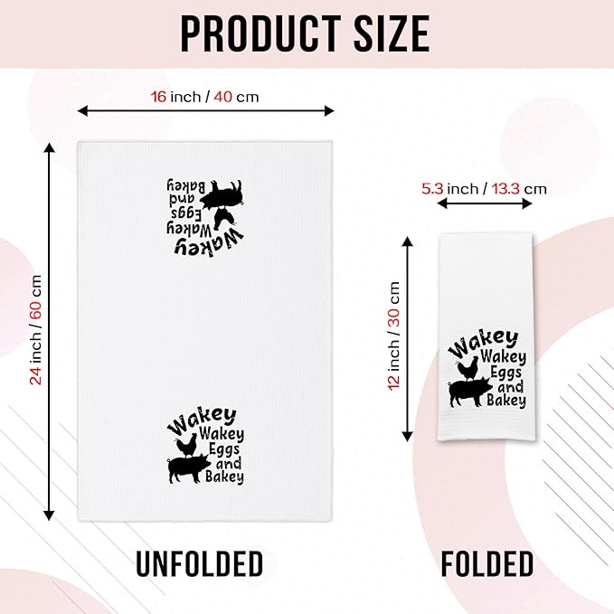 - Unique Design: Our funny kitchen towel with saying "Wakey Wakey Eggs and Bakey". The simple yet cute text patterns can bright up your kitchen and surprise your family and friends. It's a perfect kitchen gift for your favourite chef.