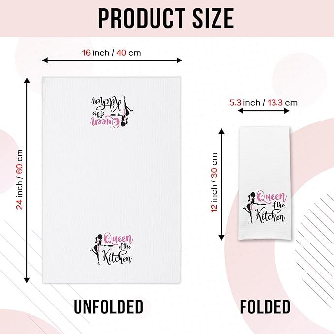 - Unique Design: Our funny kitchen towel with saying "Queen of The Kitchen". The simple yet cute text patterns can bright up your kitchen and surprise your family and friends. It's a perfect kitchen gift for your favourite chef.
