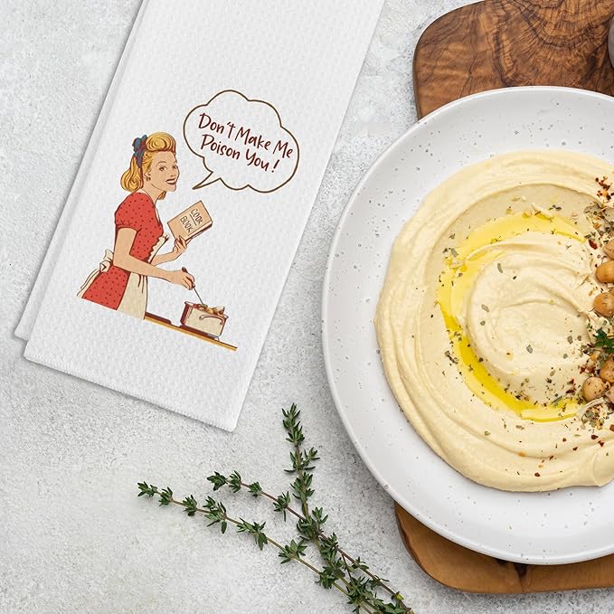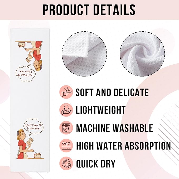 Funny Kitchen Dish Towels with Jokes Themed Don't Make Me Poison You Soft Dishcloths Funny Retro Housewife Kitchen Towels Hilarious Birthday Gifts for Women Hostess Wife Sister Chef Friend