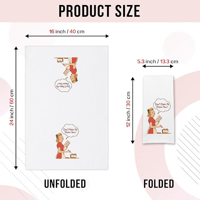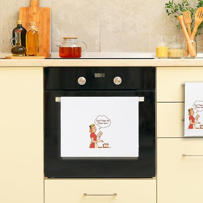 - Unique Design: Our funny kitchen towel with saying "Don't Make Me Poison You". The simple yet cute text patterns can bright up your kitchen and surprise your family and friends. It's a perfect kitchen gift for your favourite chef.