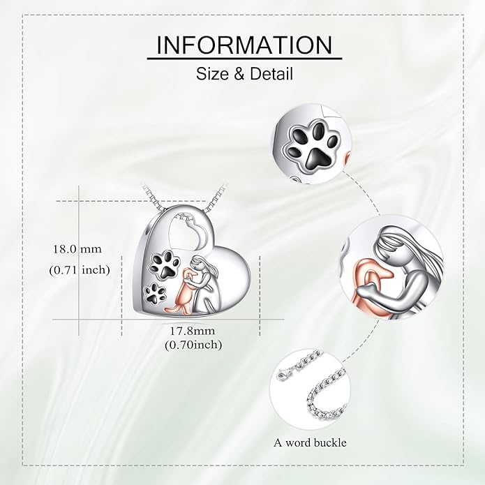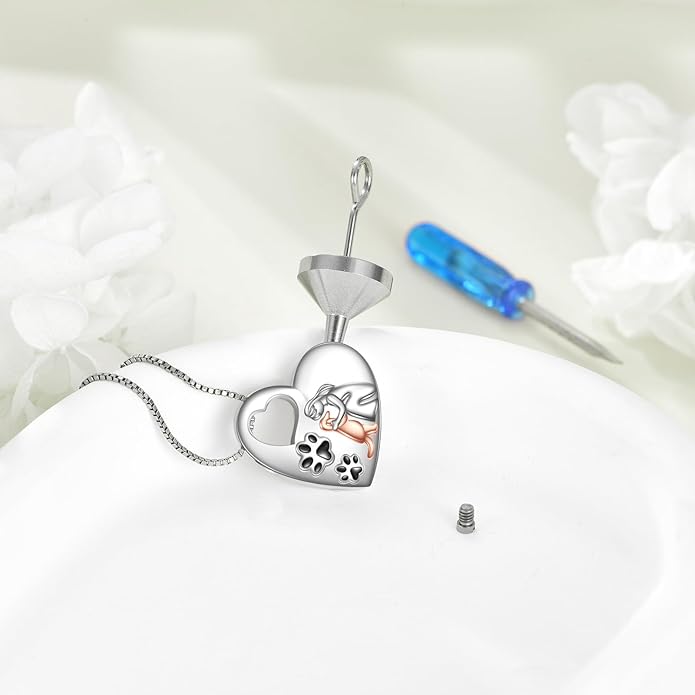 - ❤Urn Necklace for Ashes❤ The 925 sterling silver pet ashes necklace can hold a small amount of ashes of your loved pet. May this pet memorial necklace carry the memories of your pet, keep him around forever, and bring you comfort.