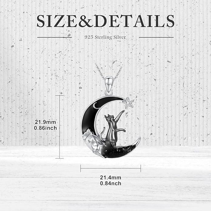 - Exquisite Design: This Diamond Black Cat Necklace is made of high-quality S925 sterling silver, featuring a delicate pendant in the shape of a cat standing on the moon. The diamond cat pendant is adorned with sparkling diamonds, adding a touch of elegance and charm to any outfit.