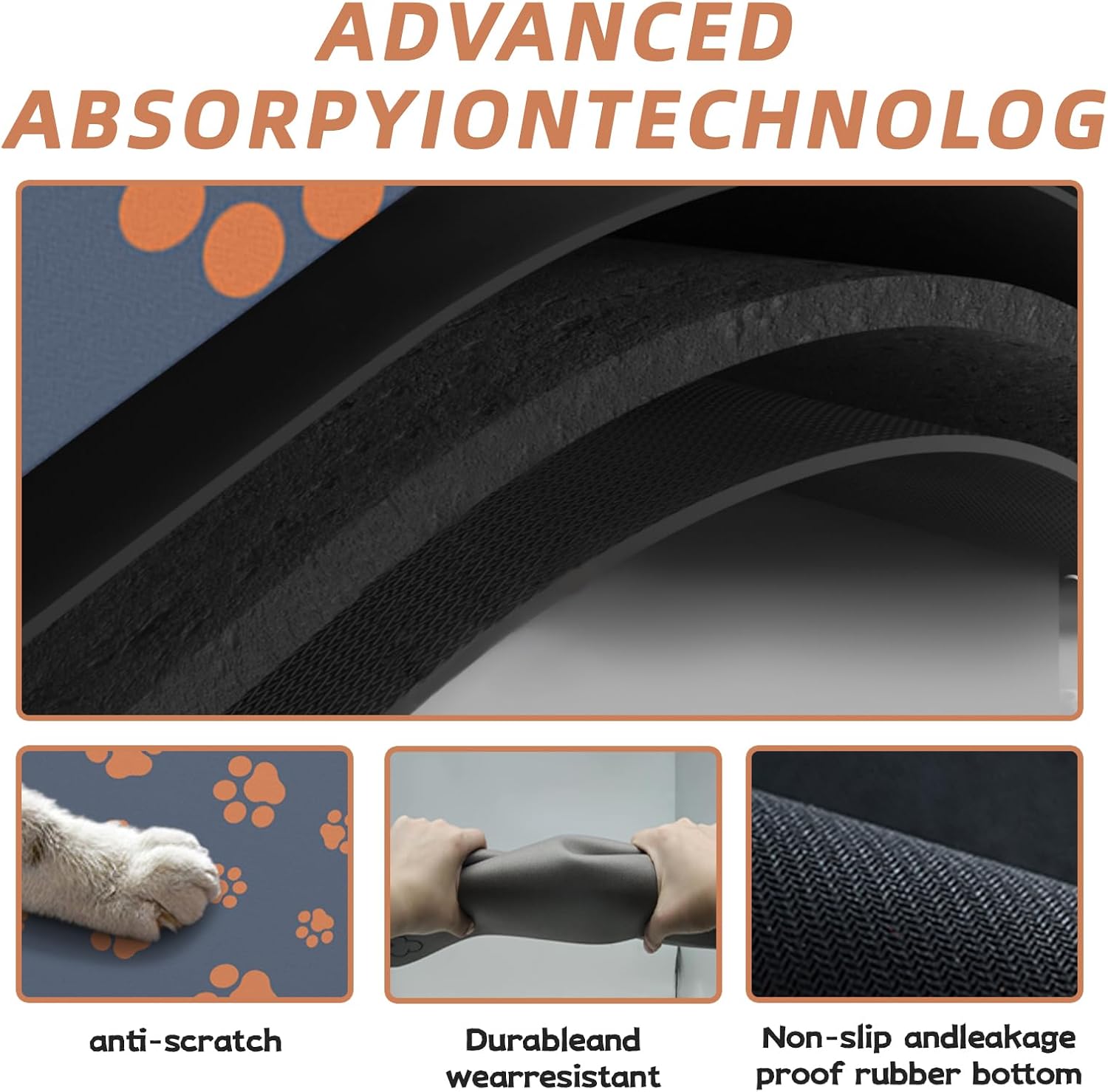 12"×20" Dog Food Mat-Absorbent Mat for Food and Water No Stains Quick Dry Cat Bowl Mat Non Skid Dog Feeding Mat with Footprints for Messy Drinkers Blue