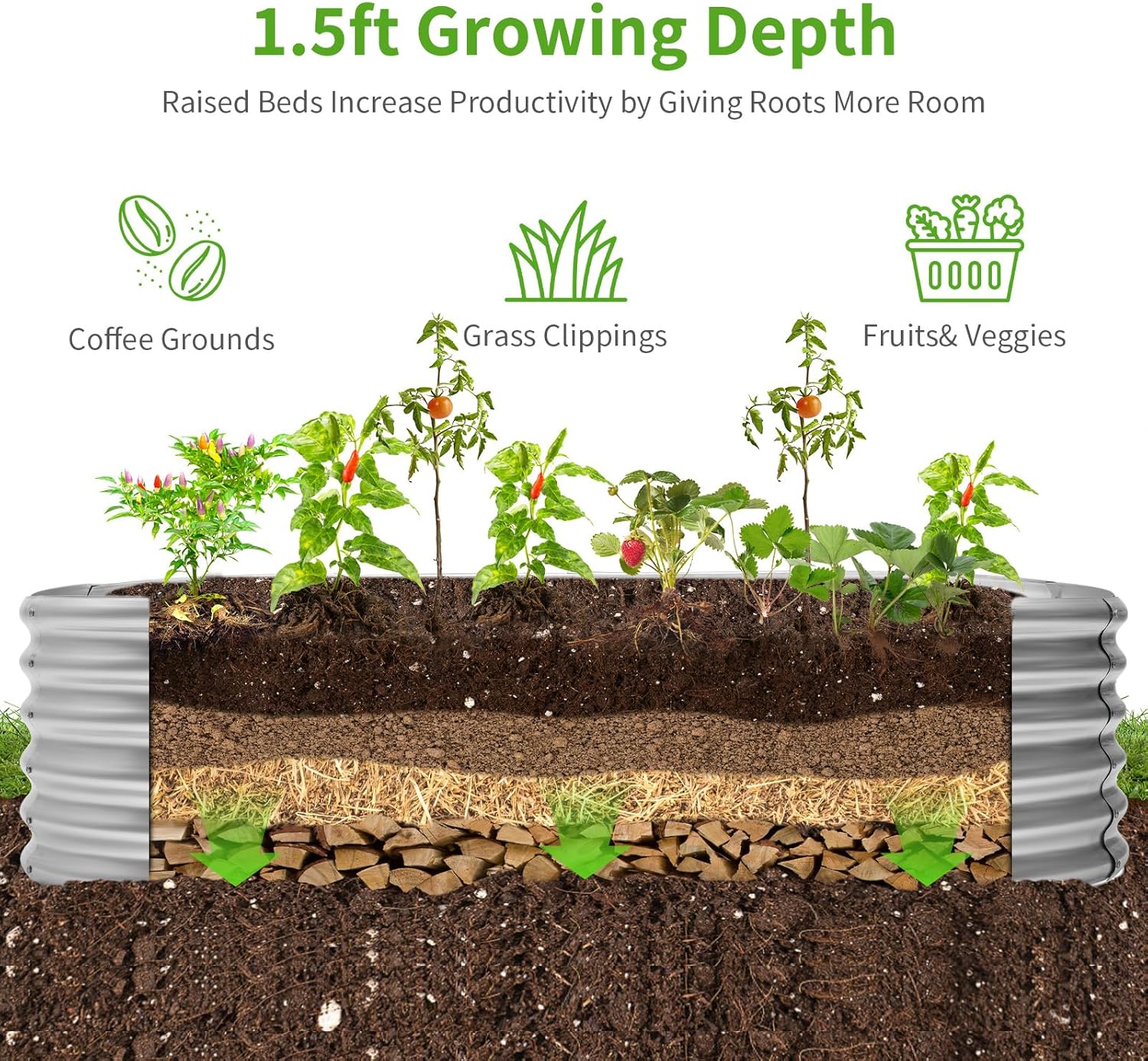 - Deepened Height: This metal planters for outdoors measures 72 "L x 36 "W x 18 "H, which provides more than ample room for plants to grow, as well as some deeper rooted vegetables or fruits, compared to the 12 "H garden bed.