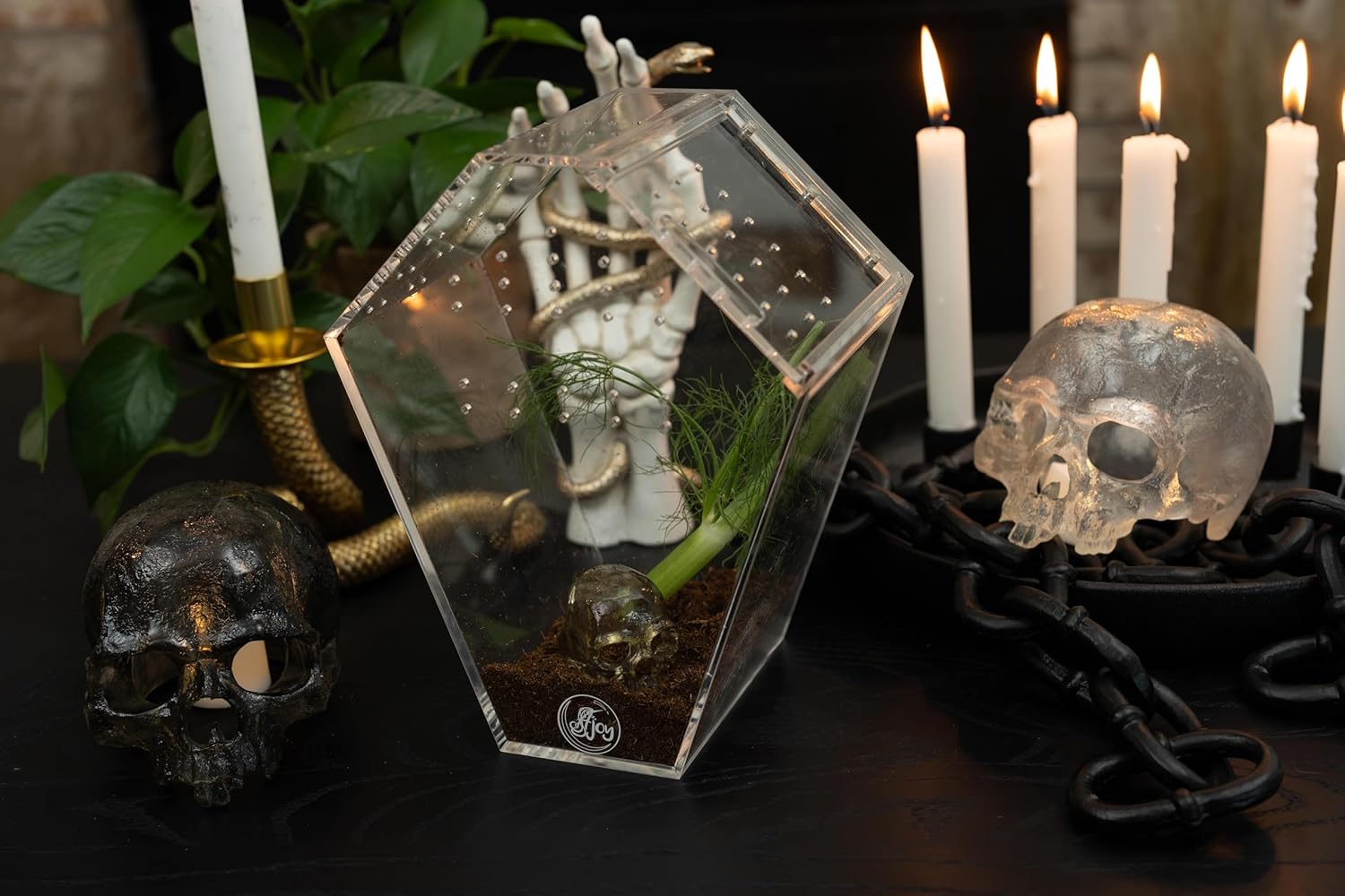 Coffin Shaped Jumping Spider Enclosure 9.5”x7.5”x5” Tarantula Enclosure Reptile Terrarium w/Sliding Magnetic Door. Great Reptile Tank Acrylic Aquarium Spider Box for Terrestrial or Arboreal Animal.
