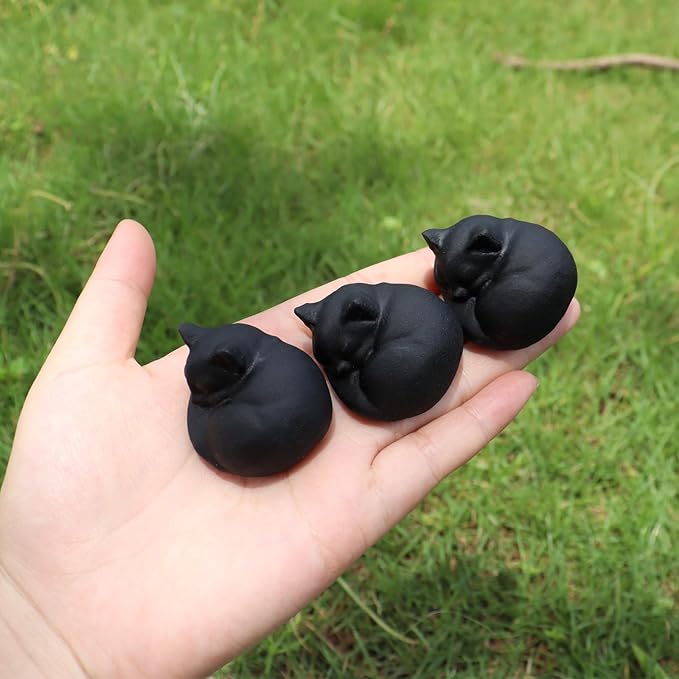 - Obsidian Cat Crystals: Size: 1.5"*1.2"*0.7"; Weight : 13-15g/pc; Material: Matt Black Obsidian; Mini size sleeping cat are nice on a small shelf, window sill or in a flower pot, and make a nice addition to meditation space.