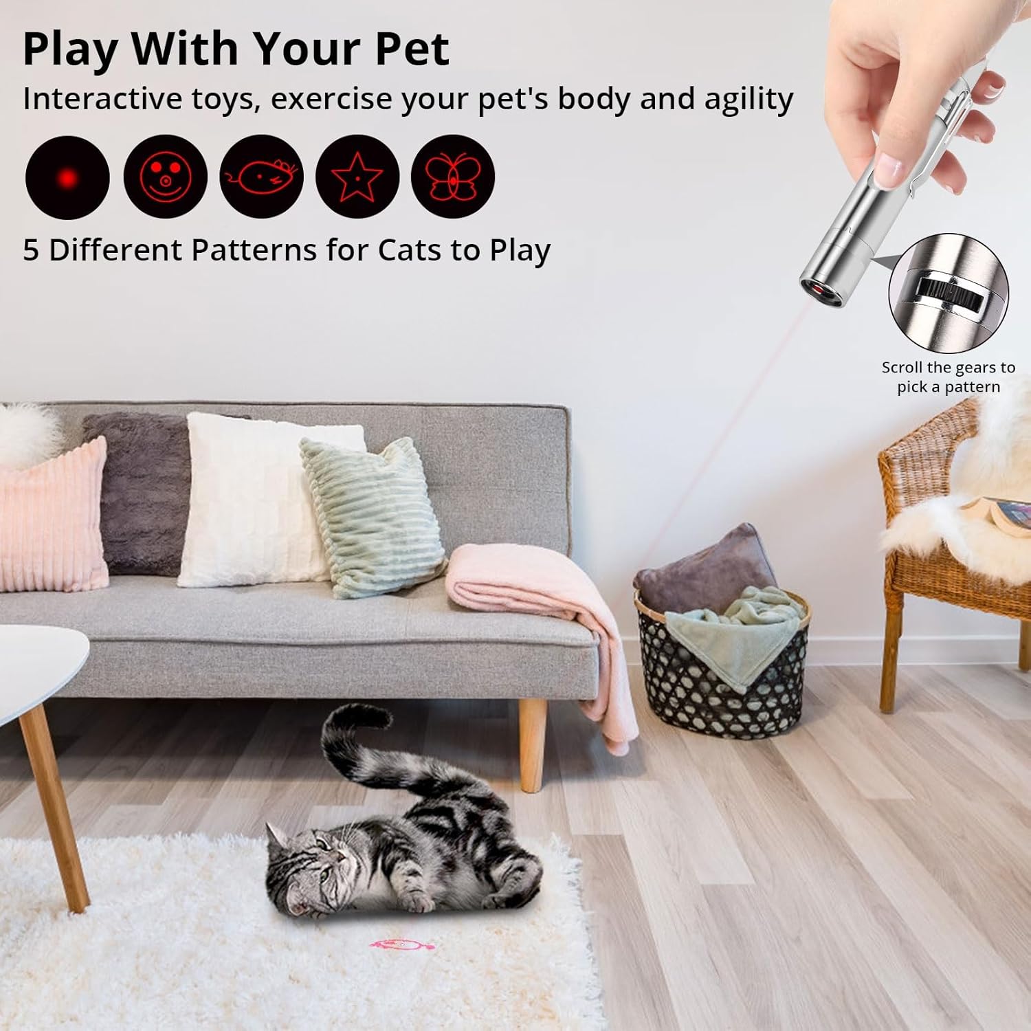 Cat Toy Pointer for Indoor Cats, USB Rechargeable Kitten Toys with 7 Adjustable Patterns, Interactive Chase Toys for Indoor Cats & Dogs, Training & Exercise Fun