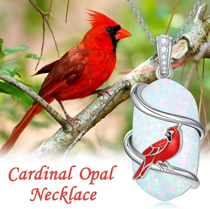 - 【Opal Necklace Material】The opal cardinal pendant is made from hypoallergenic 925 sterling silver, which is hypoallergenic and lead and nickel free. This cardinal jewelry is the perfect way to remind her of your love and support every time she wears it.