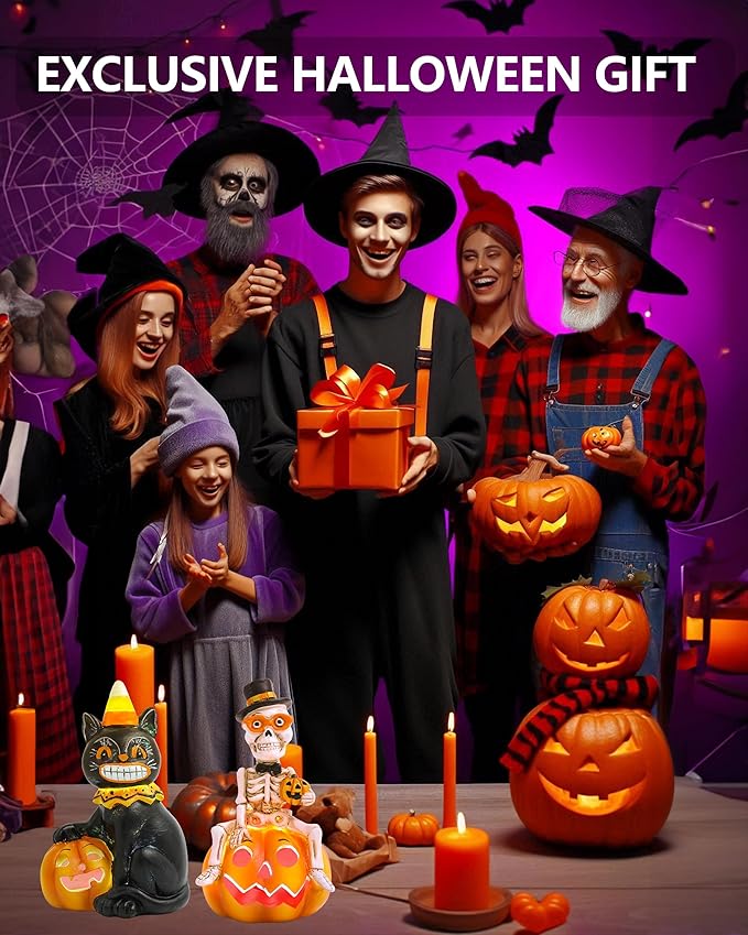 - Durable and Long-Lasting: Made from high-quality resin, these Spooky Skeleton and Black Cat Set figurines are built to withstand the test of time, ensuring your Halloween decor remains spooky year after year.