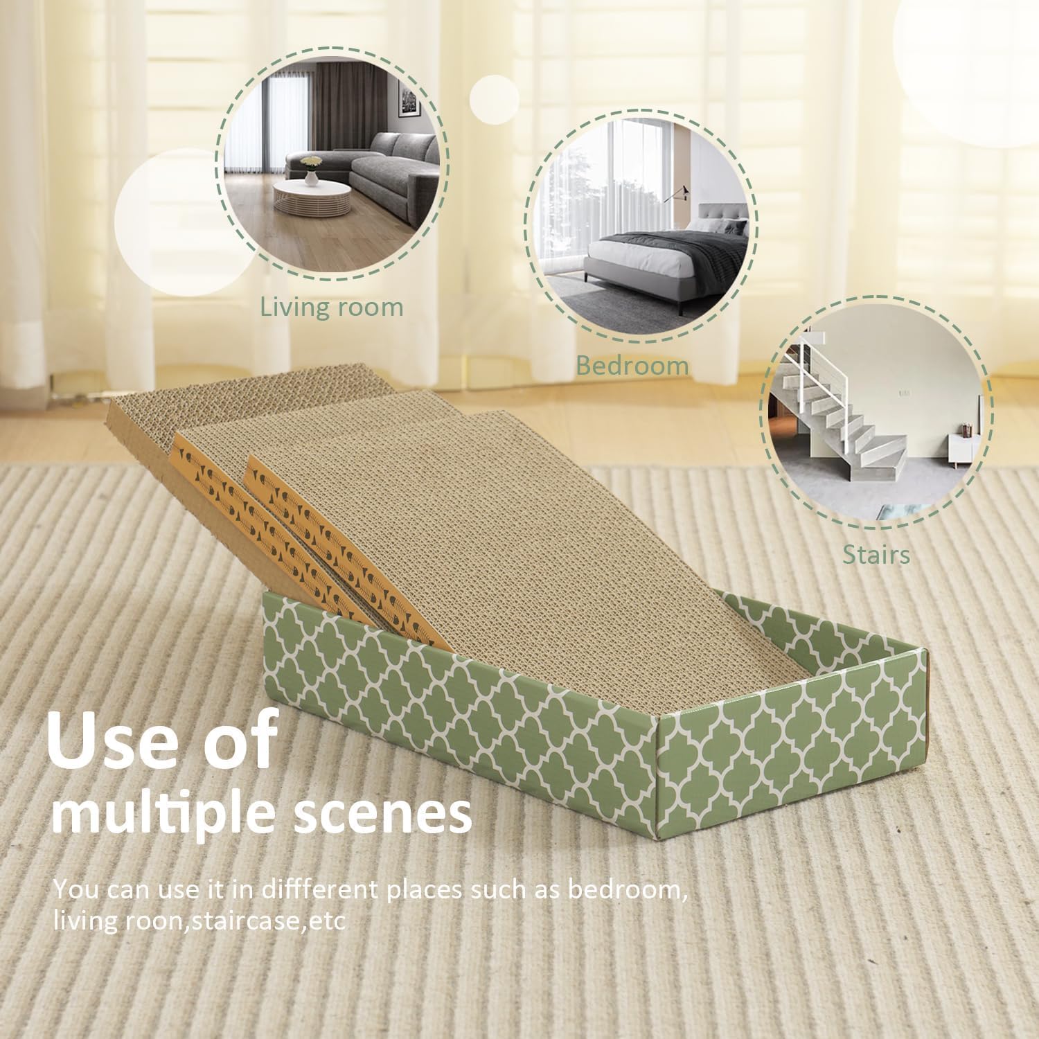 MECOOL Cat Scratching Board,3PC Scratch Pad with Box,Reversible Corrugated Scratcher Cardboard and Lounge Bed for Indoor Cats, Catnip
