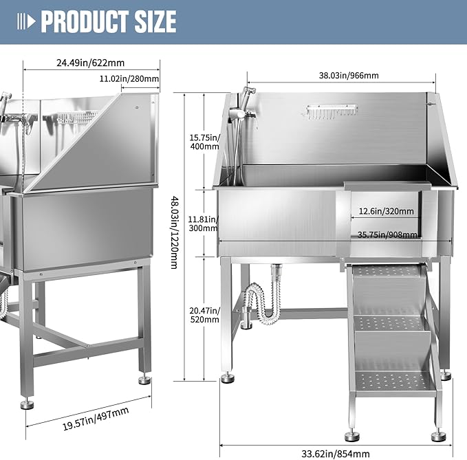- 🐶Dog Washing Station: Constructed from premium 304 stainless steel, this bathing station embodies durability and corrosion resistance. Its sleek design ensures effortless cleaning, offering not only a pet bathing haven but also a functional daily sink