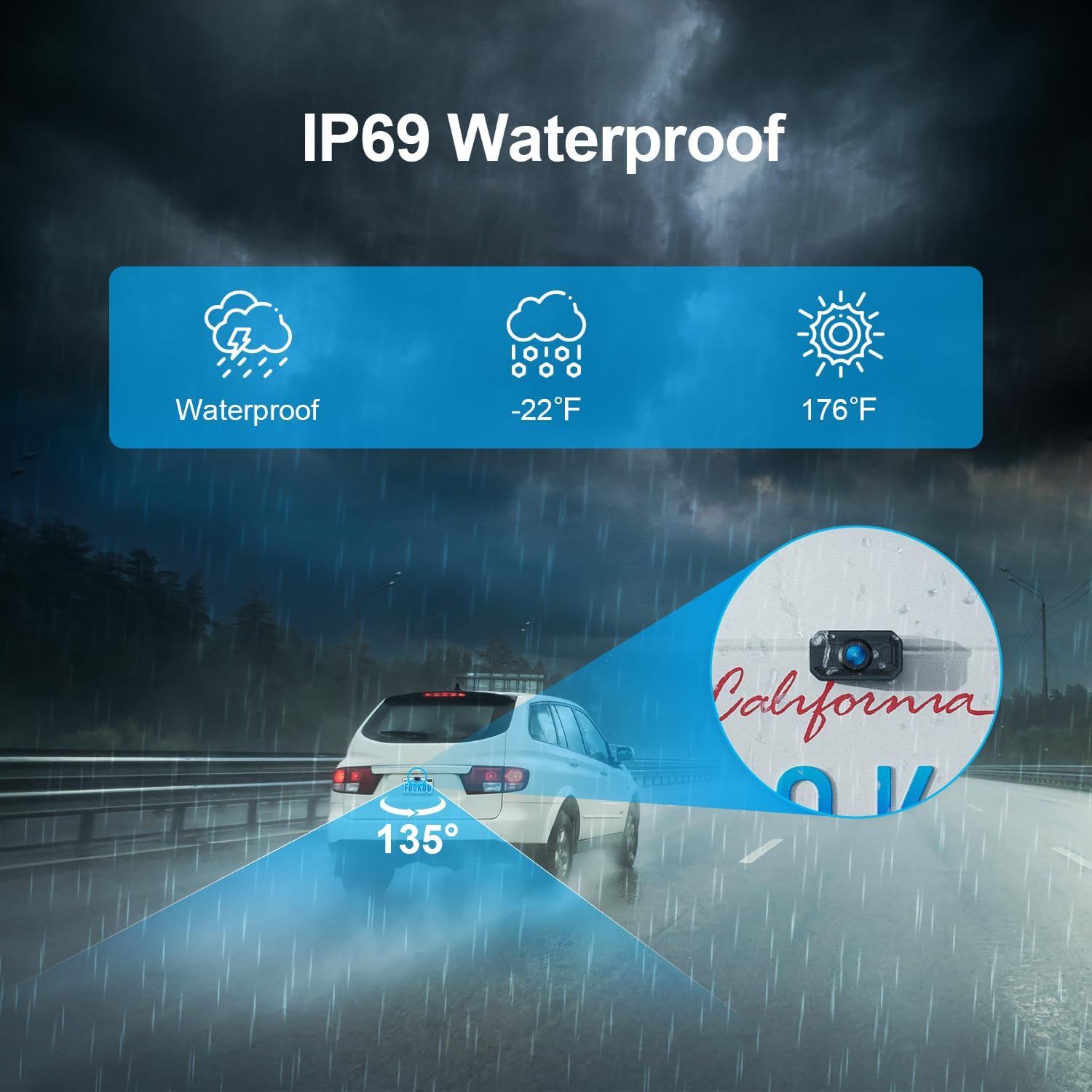 - IP69 Waterproof Liscent Plate Camera: The housing of license plate camera is made of ABS+PC metal raw material. Featuring with IP69 waterproof rating, it is more heat resistant and less likely to bend or break, which is able to work perfectly and provide clear images in extreme environments from -22°F to 176°F. It can tenaciously resist the baptism of wind, rain, dust, enhancing the safety index and service life