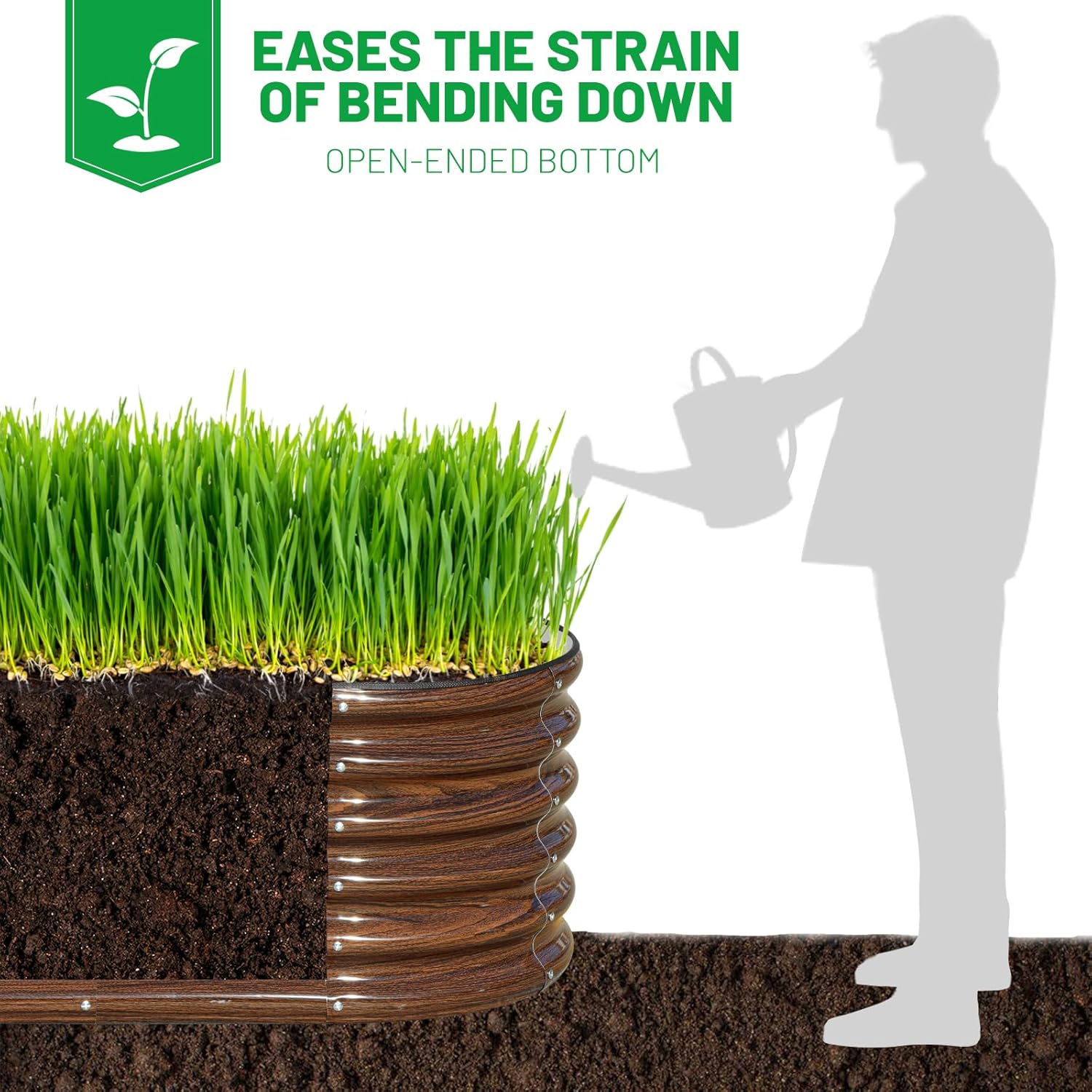 - Open Base: This planter raised bed is designed with an open base to prevent water accumulation and decay.