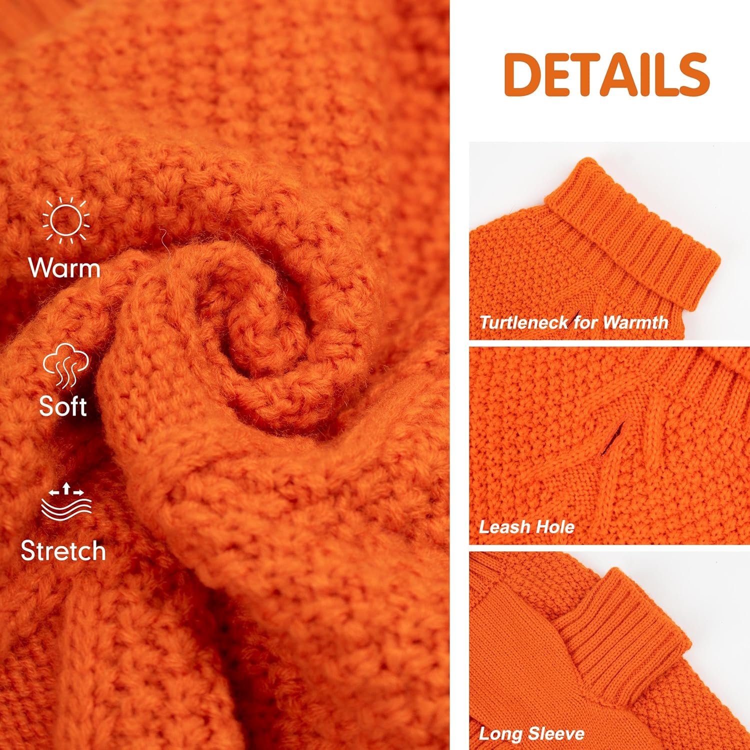 cyeollo Dog Sweater Pullover Turtleneck for Large Dogs, Classic Knitwear Fall Winter Cold Weather Dog Clothes Warm Pet Apparel Small Medium Large Dogs Sweaters, Orange 2XL