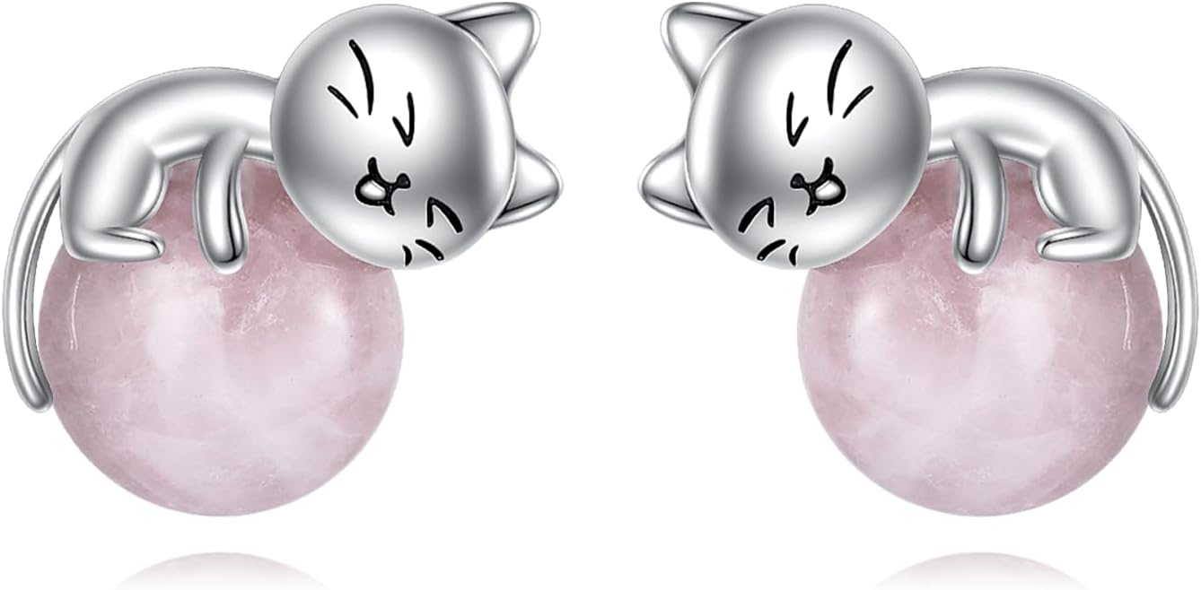 Sterling Silver Birthstone Black Cat Stud Earrings - Cat Birthstone Earrings for Women's Birthday Gift
