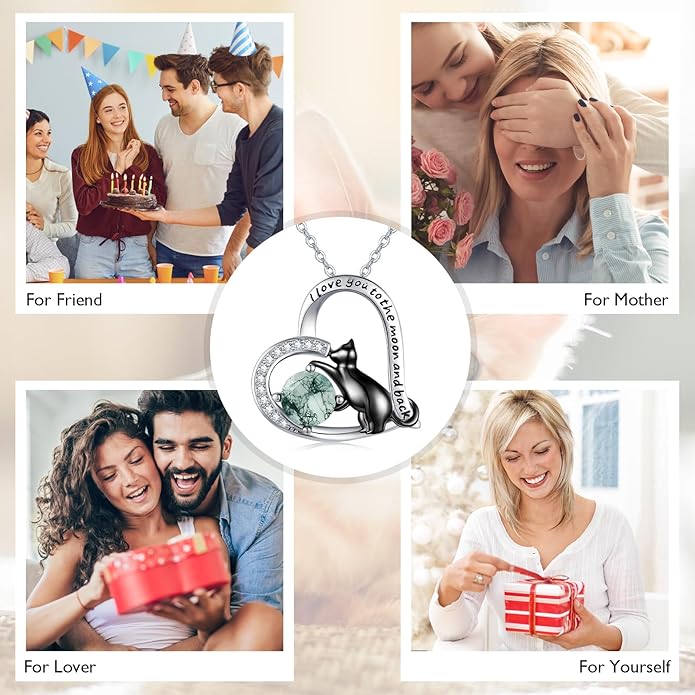 - Material: The black cat necklace is made of 925 sterling silver with moss agate, each piece of moss agate is unique, no nickel, no lead, no cadmium and hypoallergenic, especially suitable for people with sensitive skin.