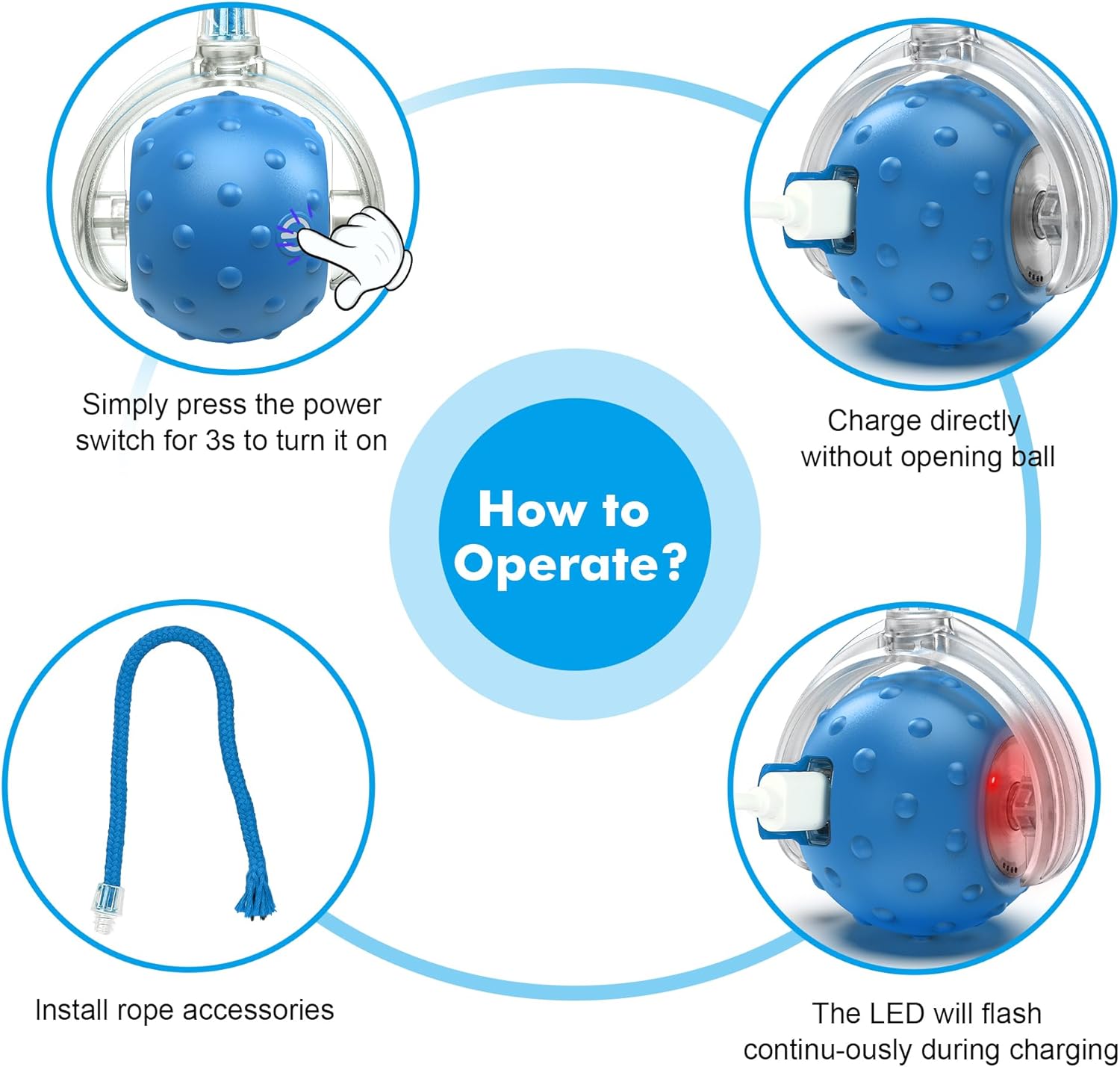 - SMART REST CAT TOY BALL -Cat Toy Mouse Automatic rest feature to ensure your cat gets timely breaks | Fast charging for all-day play with a convenient USB Type-C charging cable included