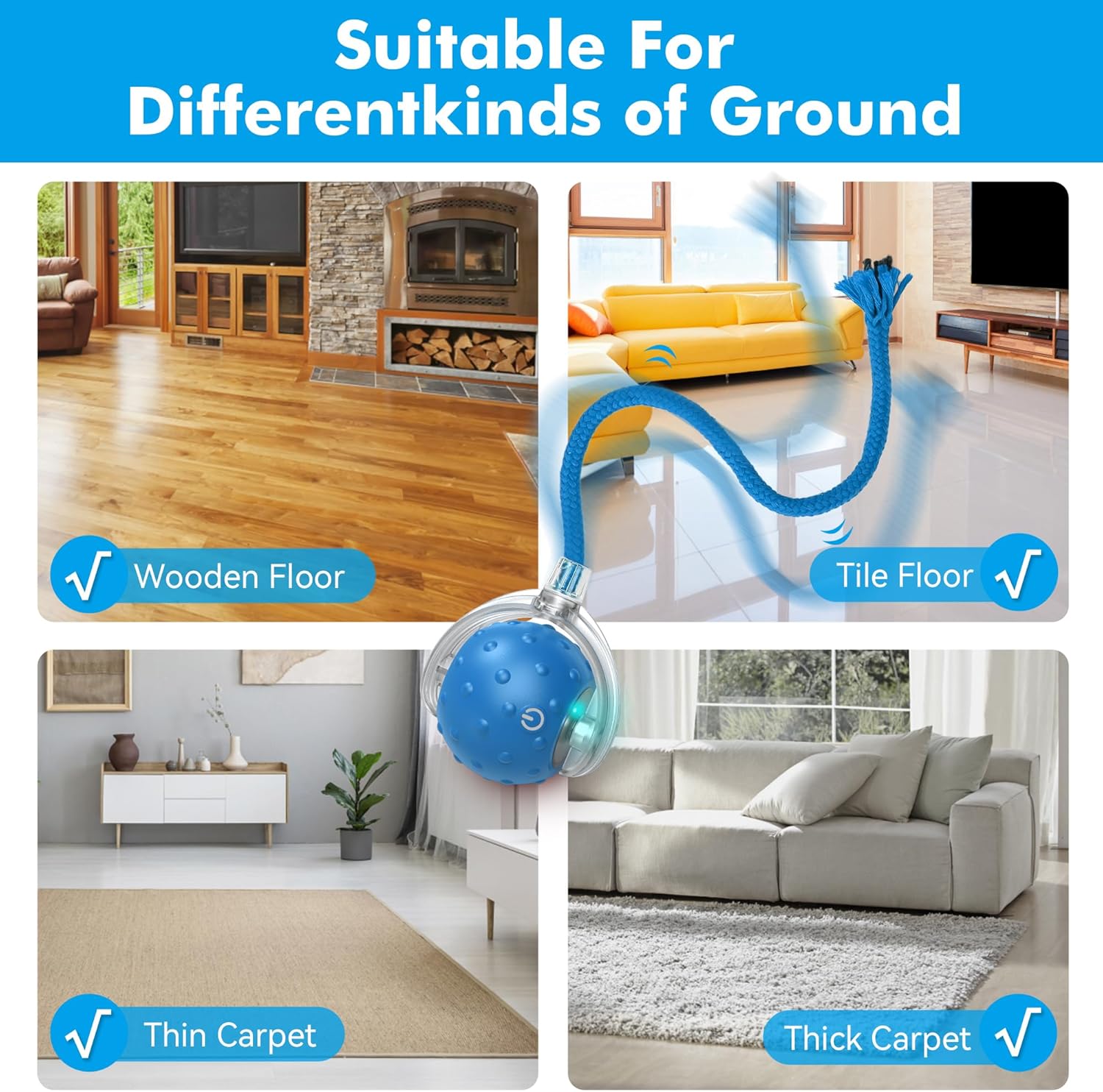 Cat Toys Ball for Indoor Cats - Interactive Automatic Cat Ball Toy | Fast Rolling & Motion Activated Chirping | Hide and Seek Mouse Catching Game | Stimulates Hunting Instinct (Blue)