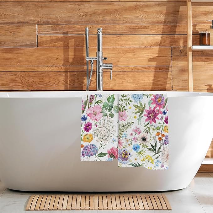 Colorful Flowers Botanical Leaves Hand Towel Set of 2,Watercolor Spring Floral Soft Absorbent Decorative Bathroom Kitchen Towel for Bathroom Kitchen Hotel Gym Yoga