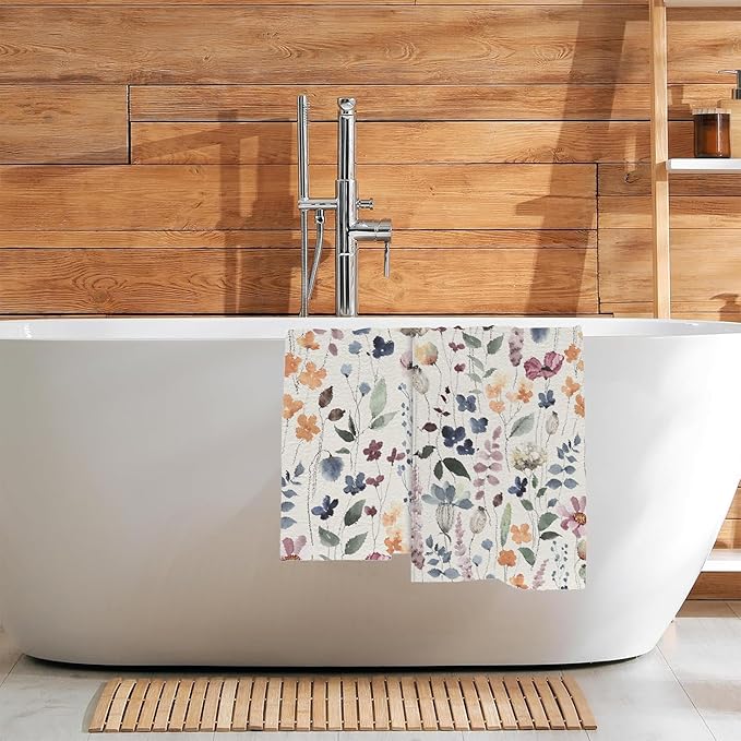 Watercolor Flowers Bathroom Hand Towel Set of 2,Vintage Botanical Floral Leaves Fingertip Kitchen Hand Towel,Soft Absorbent Decorative for Hotel Gym Yoga Home Decor