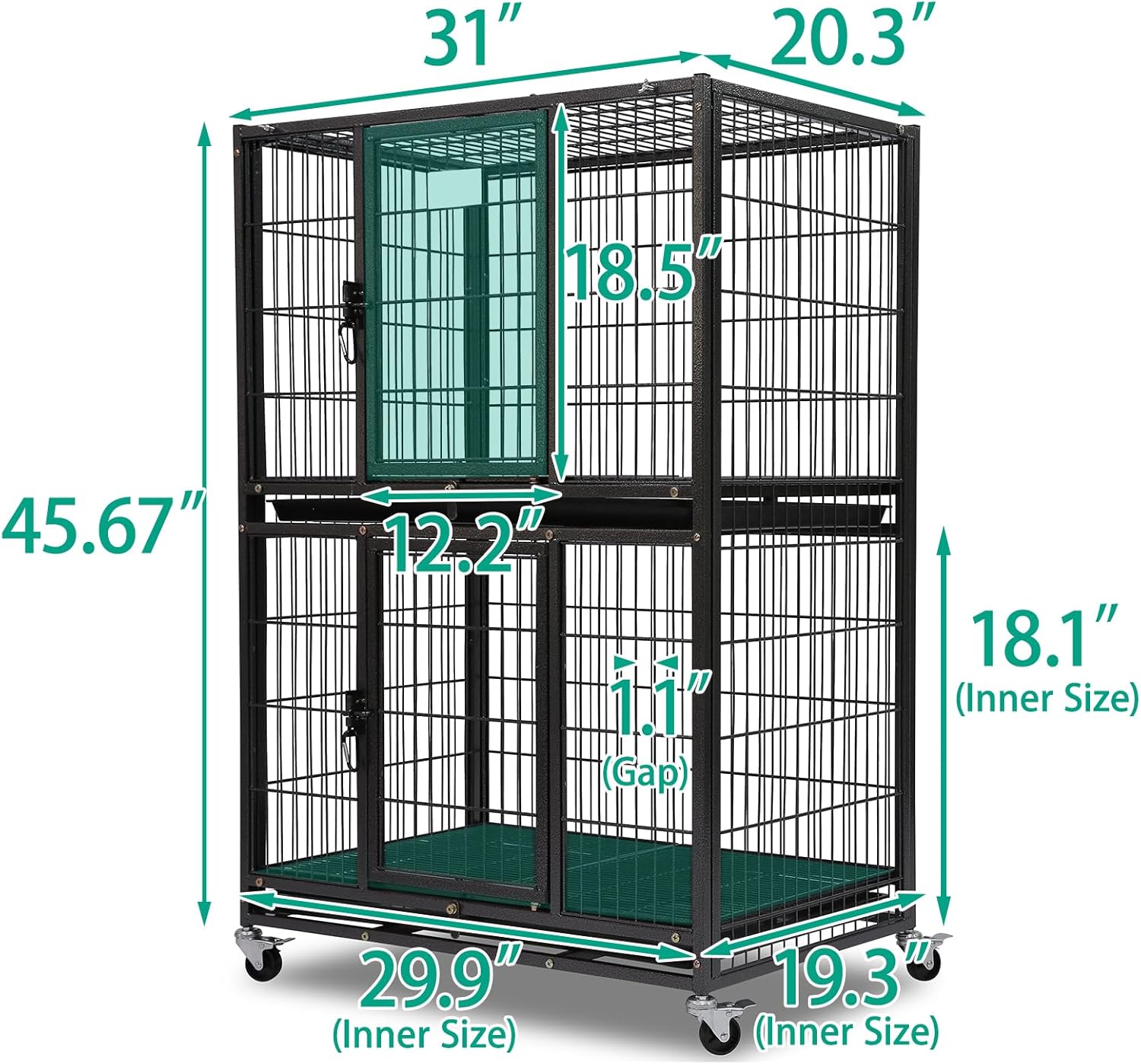 - Small Dog Cage for Two Dogs: Integrated structure for superior strength and stability, made from high-quality metal that’s strong and durable. Space-saving two-tier design—ideal for dog kennels, boarding facilities, veterinary clinics, and pet grooming shops