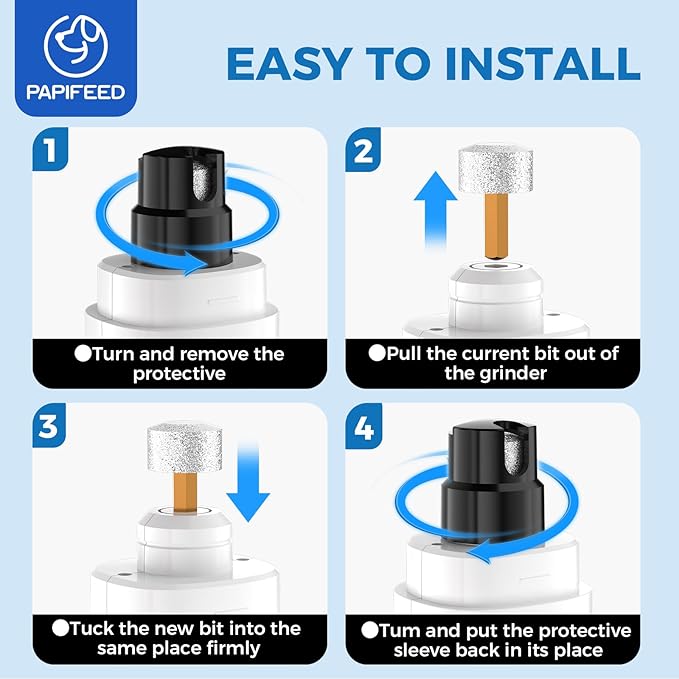 - 🐾【WHISPER QUIET&MINIMAL VIBRATION】With the latest mute technology and innovative powerful motor, the PAPIFEED dog nail file operates quietly, emitting less than 40 dB of noise. Additionally, the ergonomic body design of the dog nail trimmers reduces noise and vibration. By being exceptionally quiet and producing minimal vibration, these features help alleviate pets' fear and anxiety during the nail grooming process.