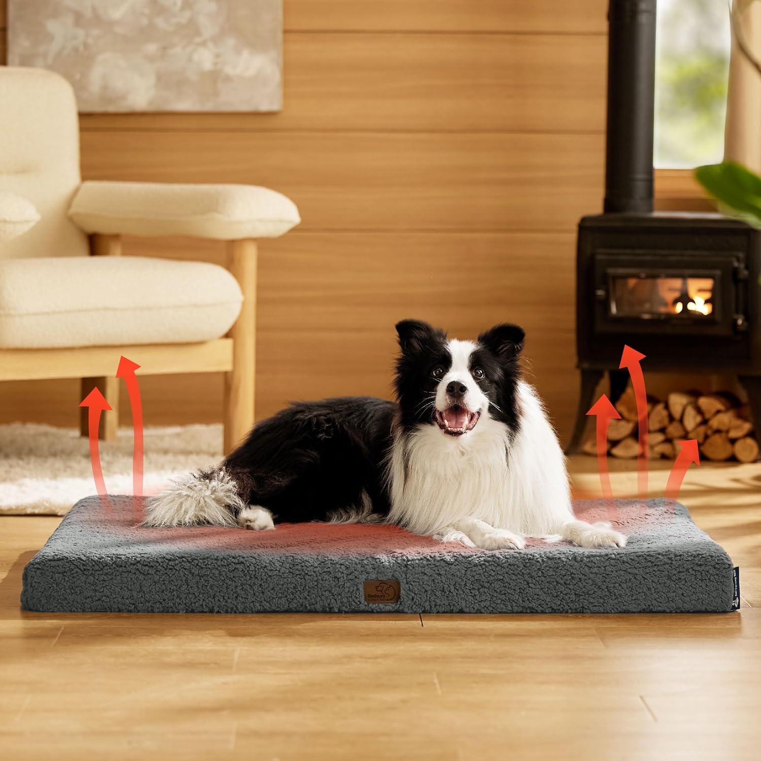 Bedsure Self Warming Dog Bed for Large Dogs - Orthopedic Waterproof Puppy Beds with Removable Washable Cover, Egg Crate Foam Pet Mat, Suitable for Pet Up to 65 lbs