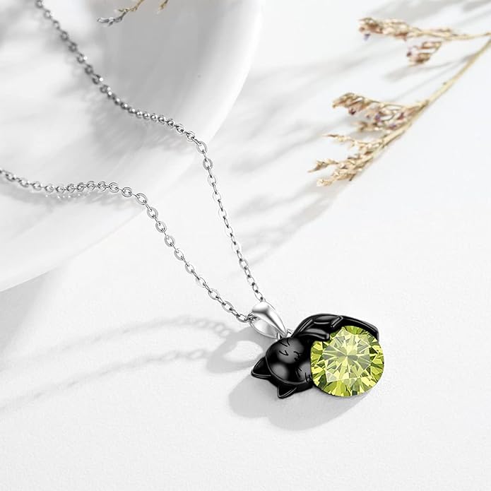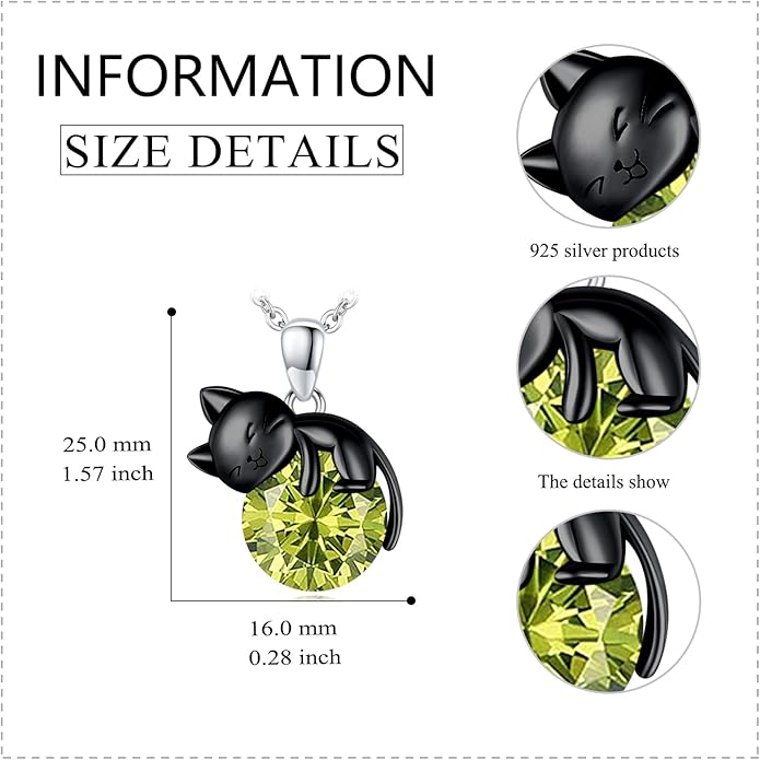 - πββ¬ Design: The cat pendant is black with the August birthstone, which is peridot. This necklace is a perfect gift for cat lovers born in August, as it combines the charm of a black cat with the beauty of the peridot gemstone.