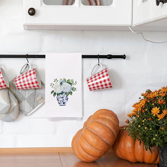SPBL&L Blue Hydrangea Chinoiserie Kitchen Towels, White Floral Dish Towels, Hand Towels for Bathroom, Grandmillennial Decor, 16x24 Inch