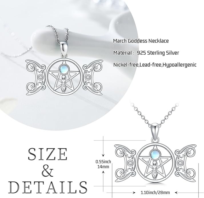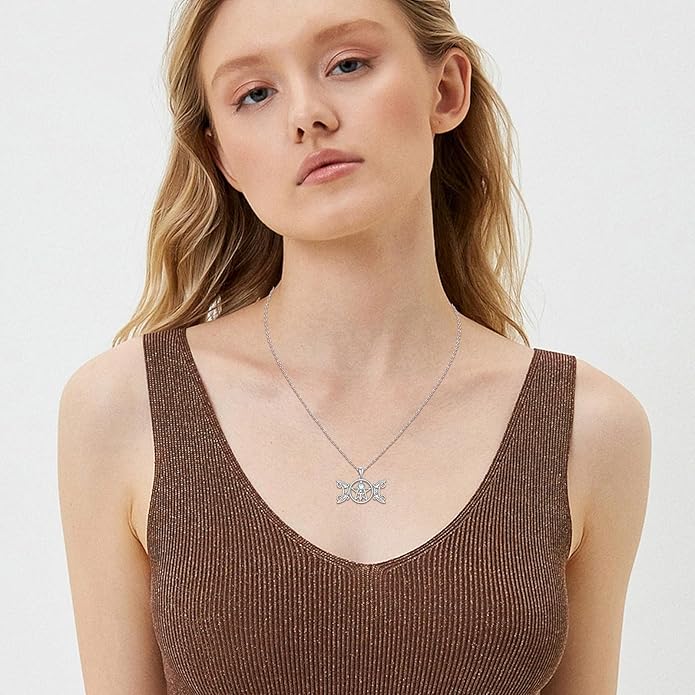 Witch Necklace 925 Sterling Silver Pentagram Triple Moon Pentacle Pendant Wiccan Pagan Jewelry Witchy Gifts for Women