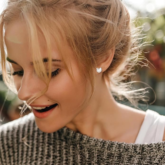 - 【Earrings Size】: The size of the cat earrings for women is 10mm, and the pearls are 7.5~8mm freshwater cultured pearls; Light weight, comfortable to wear