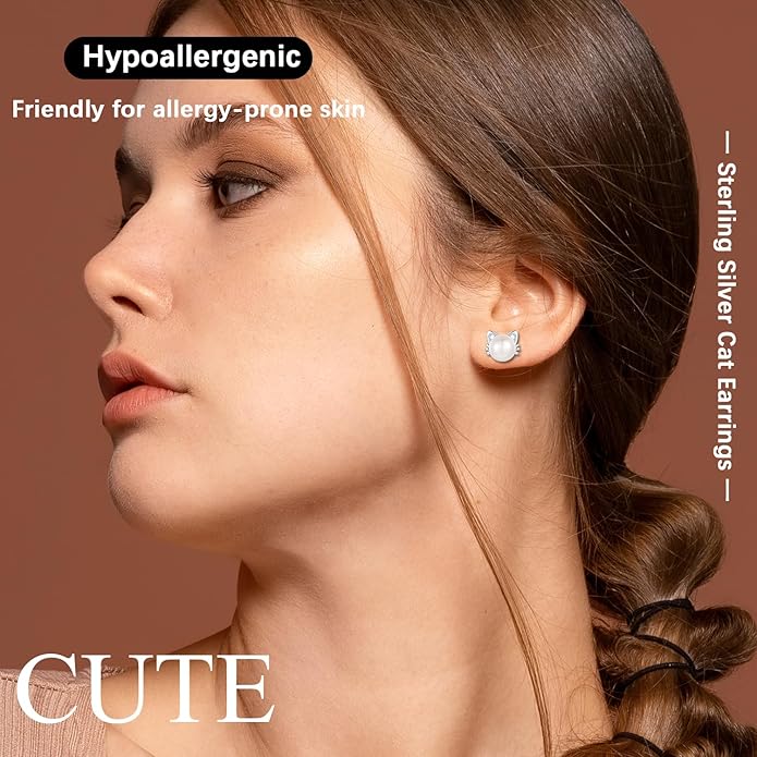 - 【Earrings Material】: The cat earrings are made of 925 sterling silver and plated with white gold; Not only has hypoallergenic, but also can keep the earrings shiny for a long time