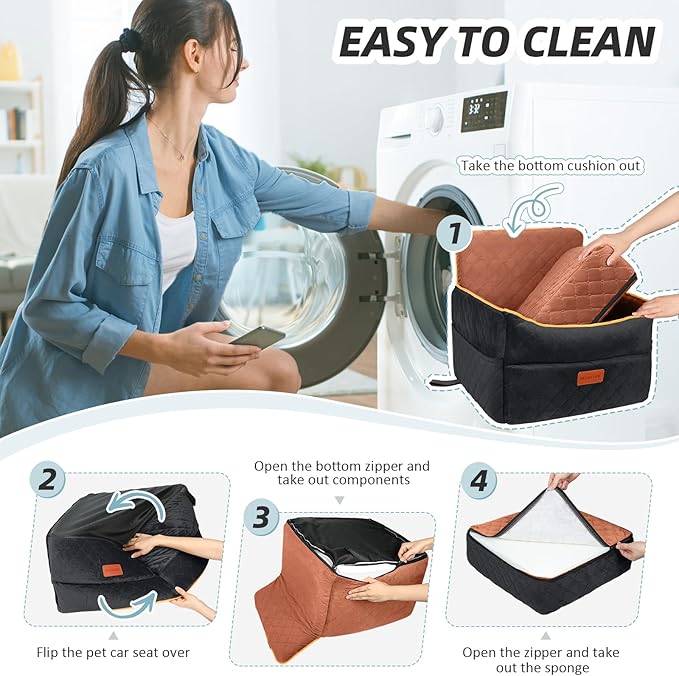 - Multi-functional Use: The small dog car seat is not only suitable for vehicles, but can also be used as a dog bed at home, outdoors or in a tent, providing your dog with a comfortable resting space anwhere. It has a removable and washable cover, simply open the zipper and take out the sponge to clean the cover. Please note that the inner sponge is not washable