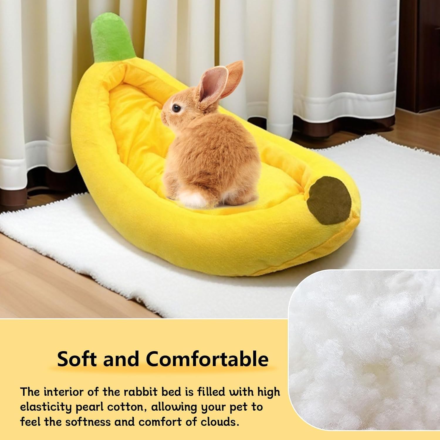 Bunny Bed,Rabbit Bed,Thick&Soft with Removable Mat,Machine Washable Guinea Pig Cushion,Cozy Bunny Plush House,Warm Small Animal Sleeping Beds(Yellow Banana Shape-M)