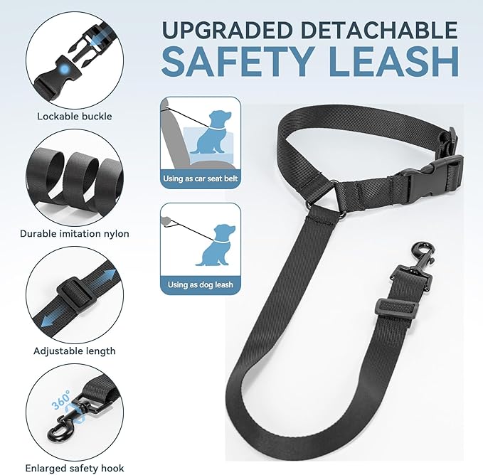 - [Patented Buckles Design for More Safety] With your pet's safety as our top priority, the pet car seat for small dog includes innovative patented buckles and a detachable safety leash. That ensures the dog booster car seat medium sized dog stays firmly in place while preventing your pet from jumping out