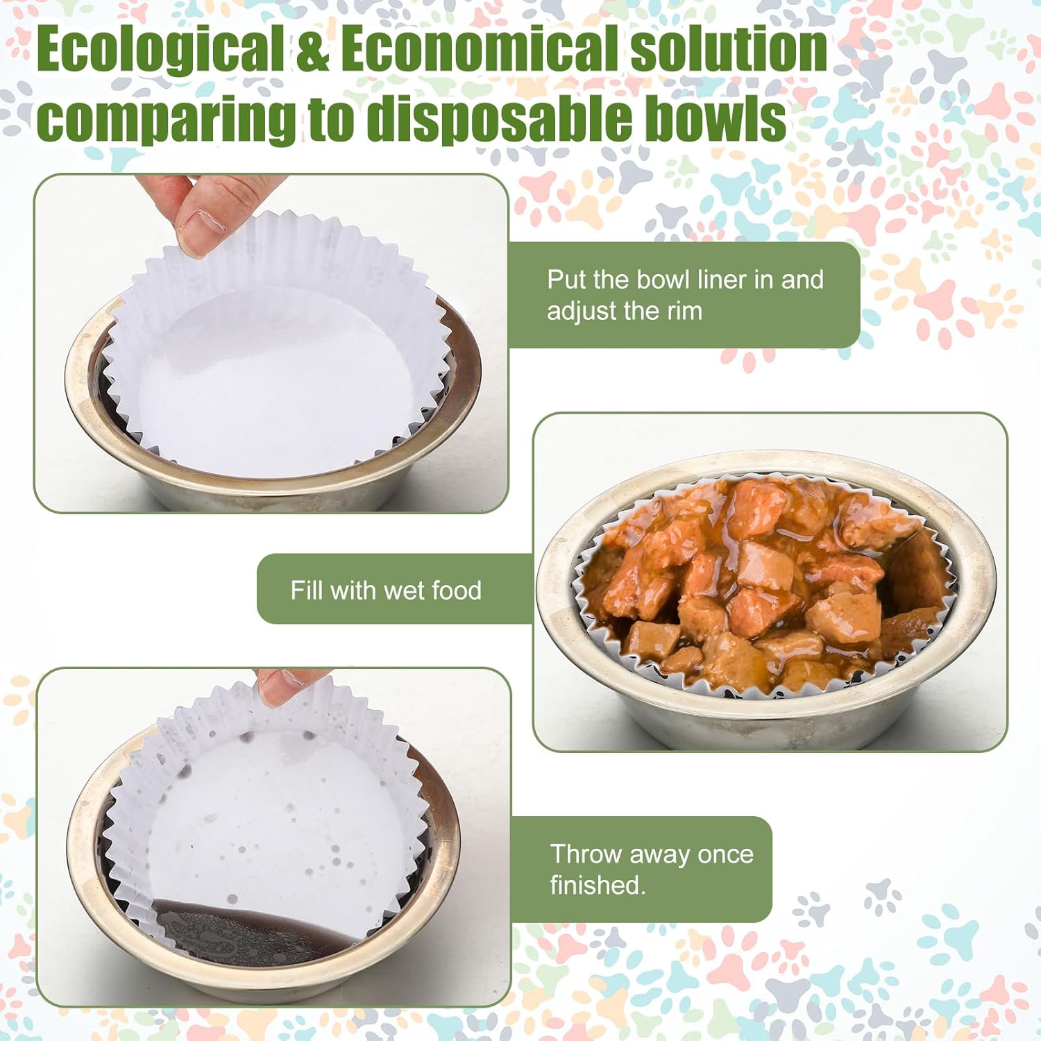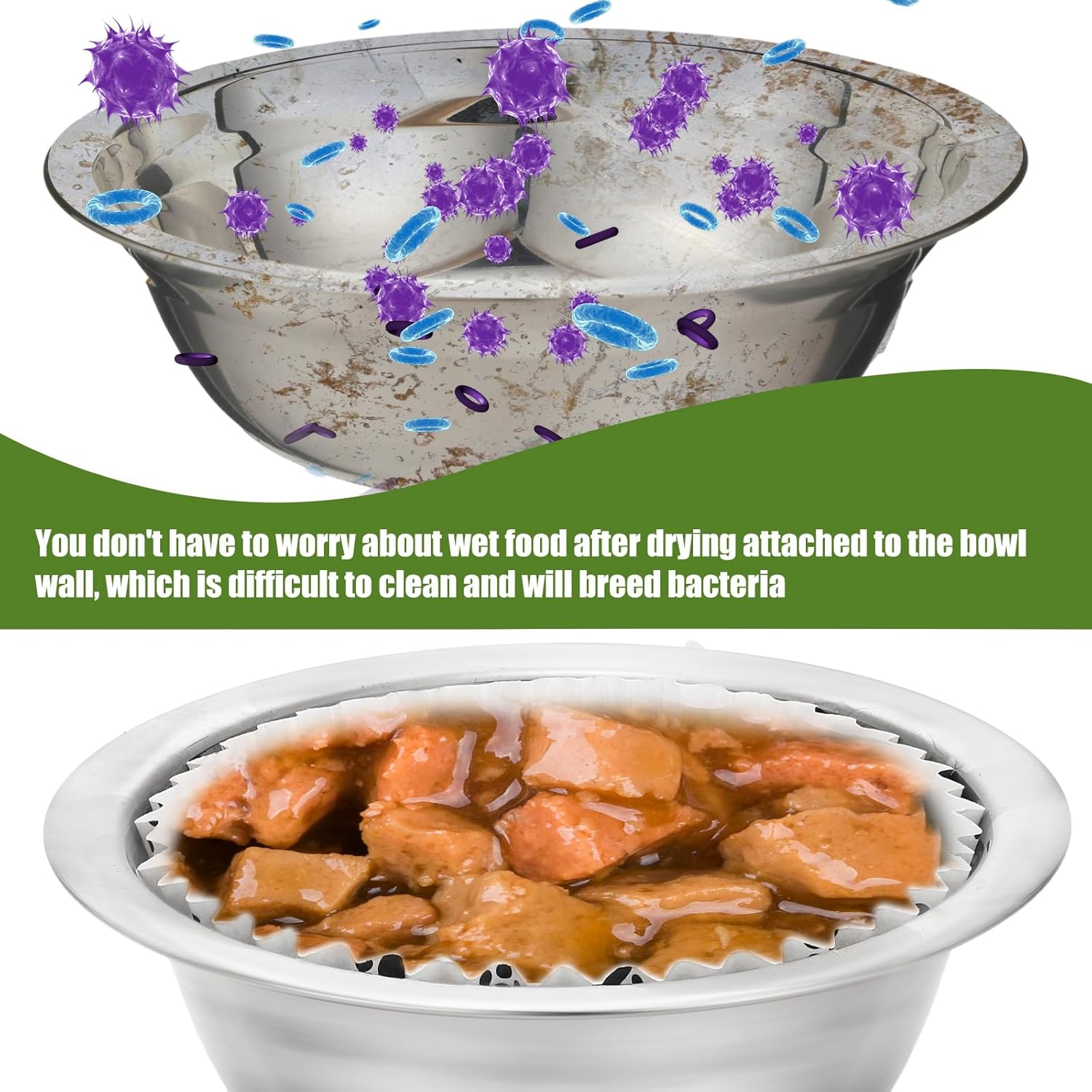 - Suitable Size: these food bowl liners measure about 4 inches/9 cm in diameter and 1.2 inches/3 cm in height, you can put them into pet bowls with a diameter of about 4.72 inches; Please notice the size before ordering to avoid buying the wrong one