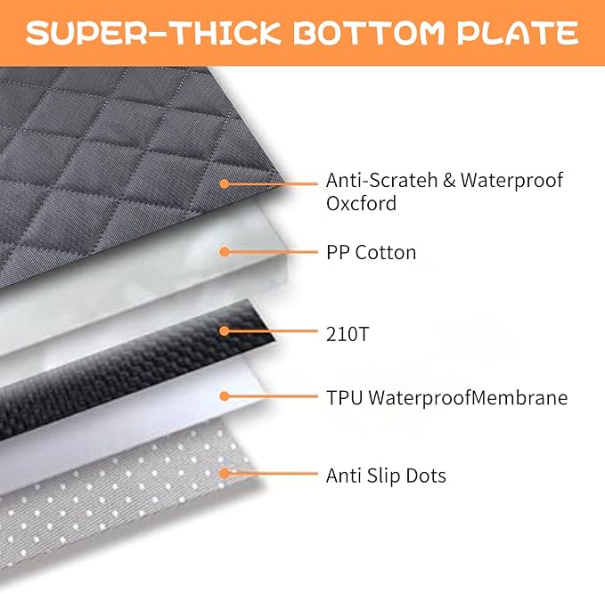 - Larger Size & Tear Resistant-We always see other front seat car dog covers buyers show and find that their front seat car dog covers are always shorter and narrower than the car seats. Buyers always complain why there is no dog front seat cover that can completely cover the car seats. So we designed this 20.5”W x 45”front seat cover for car, which is 1” wider and 2”longer than standard ones,especially for large size of trucks. The durable material is scratch resistant which is made from 600D oxford, thick PP cotton, waterproof TPU film and anti slip bottom !