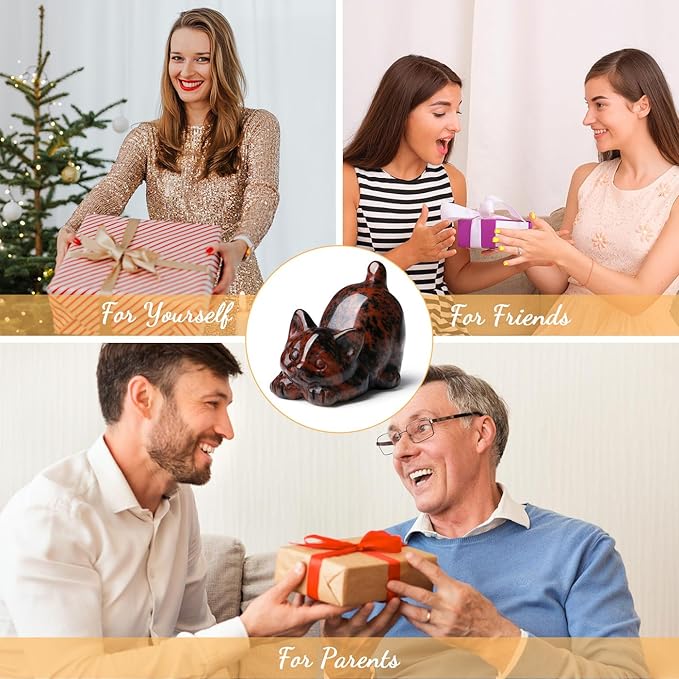 - Red Obsidian Crystal - Red Obsidian represents protection and purification, Red Obsidian can absorb and transform negative energy around us into positive energy, protecting us from negative energy. At the same time, it can bring us courage and confidence. Our crystals cat could be a fine present or place it as a decoration in your house,office computer or desk.