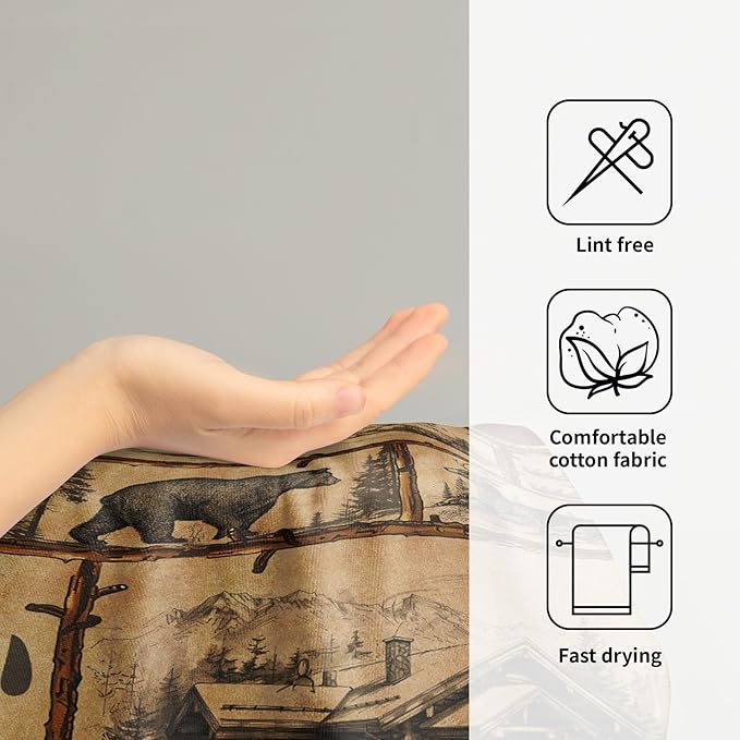 Giwawa Vintage Bear Deer Hand Towels Set of 2 Forest Cabin Face Bath Fingertip Towel Soft Absorbent Dish Wash Cloth Kitchen Bathroom Home Decor