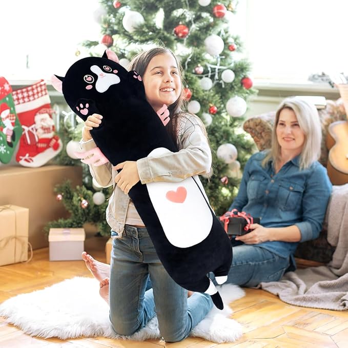 - Warm Gifts: Long animal cat body pillow is suitable for all ages. The long stuffed cat plush is lovely, soft and healing. It is very suitable for gift to children, family, classmates, friends, girlfriend. It is an ideal gift for important days such as Christmas, Thanksgiving, Children's Day, Valentine's Day, birthdays, etc.