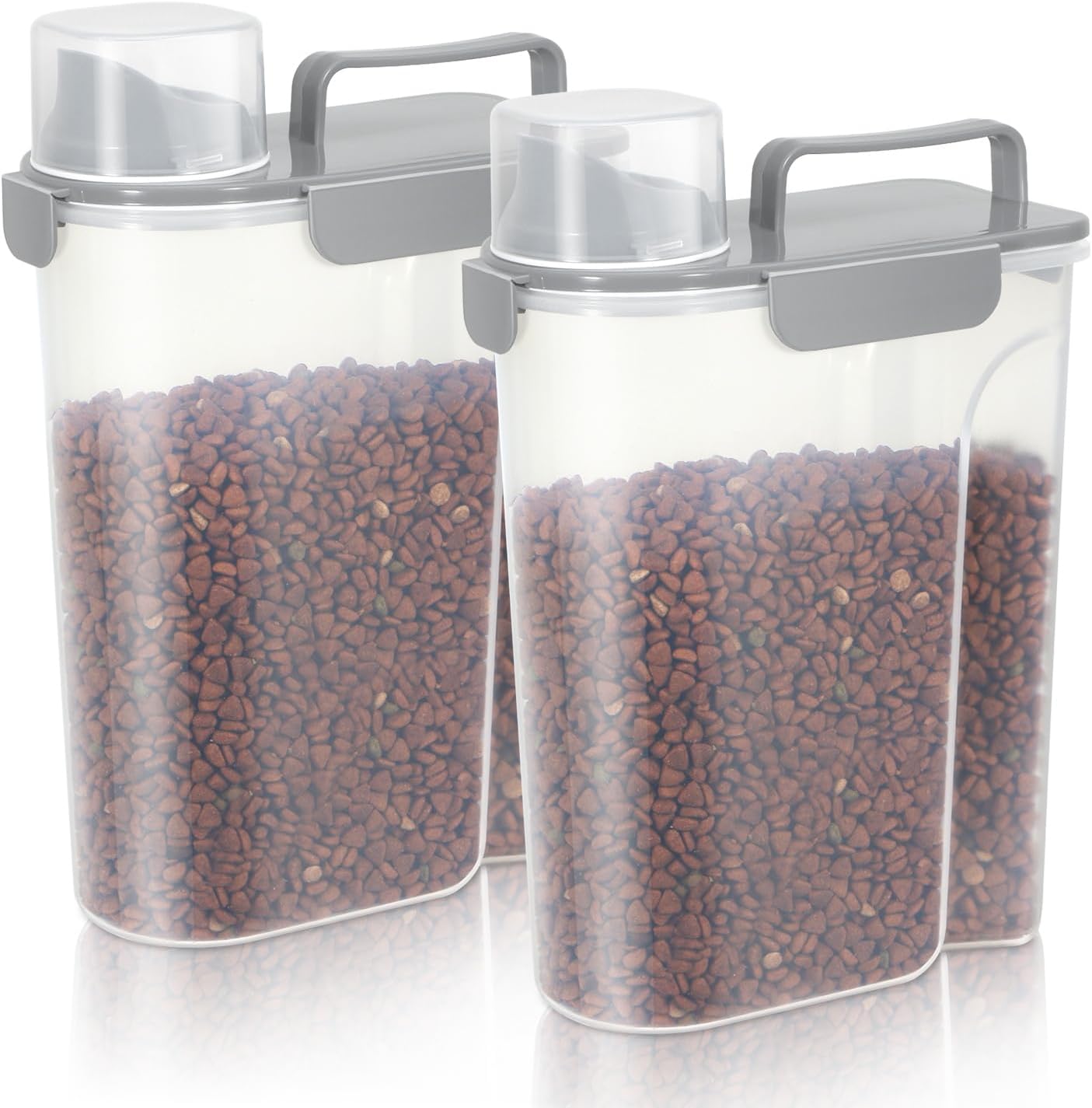 5-7Lbs Dog Cat Food Storage Container with Upgraded Large Nozzle BPA-free, 4 Snap Seals Plastic Pet Food Storage Containers with Handles (2, Light Gray, 5L)